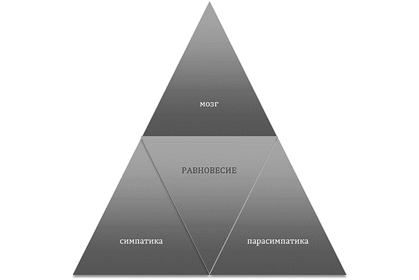 Процесс энергообмена зависит от тонуса нервной системы, от взаимосвязи симпатической и парасимпатической нервной систем. И работа мозга тоже в свою очередь максимально эффективна в покое (равновесии).