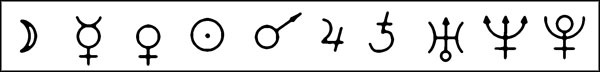 Теперь пришло время познакомиться с астрологическим алфавитом. В дальнейшем часто придется вместо слов употреблять символы. На рис. 12 приведены основные астрологические символы десяти планет и Земли, Лунных узлов и двенадцати знаков Зодиака. Другие символы будут вводиться по мере необходимости.