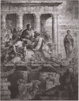 Царь Соломон приносит жертву идолам. Картина С. Бурдона (XVIII в.).