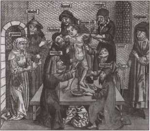 Выкачивание евреями крови из христианских младенцев. Картина XVIII в. из собора в Сандомире (Польша).