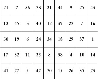 Для проведения этого пришедшего из Германии гадания необходимо скатать из муки и небольшого количества воды маленькую таблетку, которую следует бросить, предварительно задав интересующий вас вопрос, на таблицу, представленную на рис. 6.