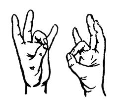 Методика исполнения: безымянный и большой пальцы соединяются подушечками с небольшим надавливанием. Оставшиеся пальцы выпрямлены. Выполняется обеими руками.