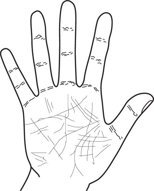 По глубине и четкости линий можно определить зрелость души. Большое количество слабовыраженных линий (вся рука покрыта сеткой) характерны для совсем юных душ, детей, если переводить на наш земной возраст. Такие люди эмоциональны, впечатлительны, у них слабая воля, они подвержены чужому влиянию, нуждаются в опеке родственников или друзей. Они не способны управлять своей судьбой и полагаются на волю случая. Их кармическая задача, как и у любого ребенка, – украшать жизнь взрослых. И учиться.