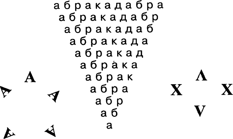 Абракадабра – термин персидского происхождения. Это было мистическое или магическое слово, которое, будучи написано на девственном пергаменте, составляло амулет, носимый на шее, для исцеления от разных болезней и главным образом от лихорадки.
