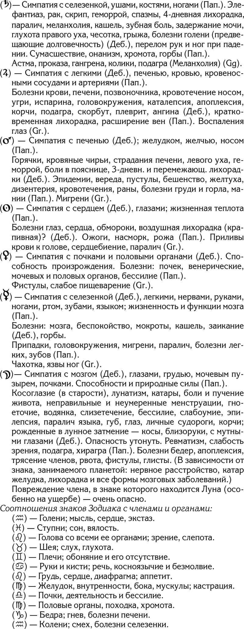Болезни происходят в большинстве случаев от влияния Марса и Сатурна.