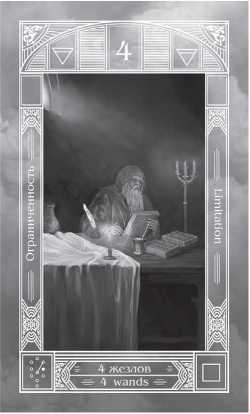 ? Отличие. Карта 4 Жезлов Таро Алфавит достаточно сильно отличается от Таро Уэйта, демонстрирующего образ «комфорта в стабильности». Безусловно, комфорт присутствует, но это комфорт изгоя или отшельника, который обречен искать свои ответы в одиночестве, Образ – попытка подсказать, надоумить в том, что такая жизнь не приведет ни к чему хорошему.