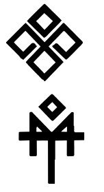 Даждьбог (Летний и Зимний) – Бог плодородия, олицетворял силу и яркость светила, его тепловые характеристики, животворящее тепло и даже правила мироздания. От Даждьбога (дающий бог) ожидали исполнения желаний, здоровья и прочих благ. Даждьбог, дать, дождь – слова однокоренные, имеющие значение «делиться, раздавать». Даждьбог посылал людям не только дождь, но и солнце, напитывающее землю светом и теплом. Всякий мужчина обязан создать большую семью – род, накормить, вырастить, воспитать детей. В этом – его долг, слав, правда. За каждым человеком стоят бесчисленные предки – его корни, и каждый должен дать жизнь ветвям – потомкам. Верхний символ – это Даждьбог летний, а нижний символ это Даждьбог зимний.