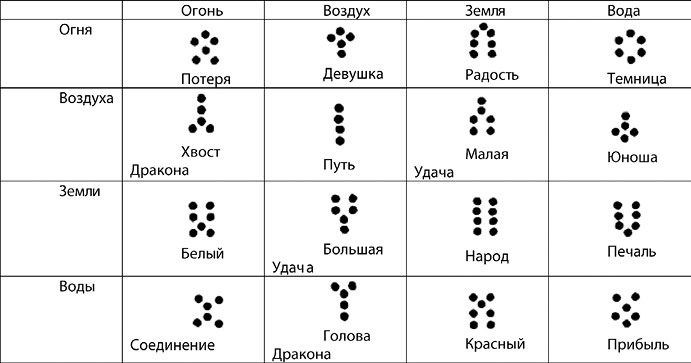И главное – подобная же «переводная» таблица существует для геомантических фигур: