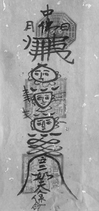 Это обереги на все случаи жизни, их много сотен разновидностей. Бумажки с заклятиями либо носятся с собой, либо приделываются к собственности.