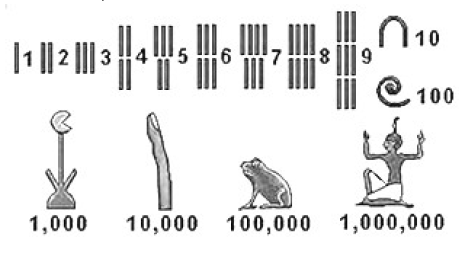 Египтяне основывали свою математику на простом, естественном ряде чисел, выполняя с ним сложные действия, для воспроизведения которых мы сейчас нуждаемся в алгебре и тригонометрии. Древнеегипетская числовая прогрессия начиналась с 1, а не с 0.