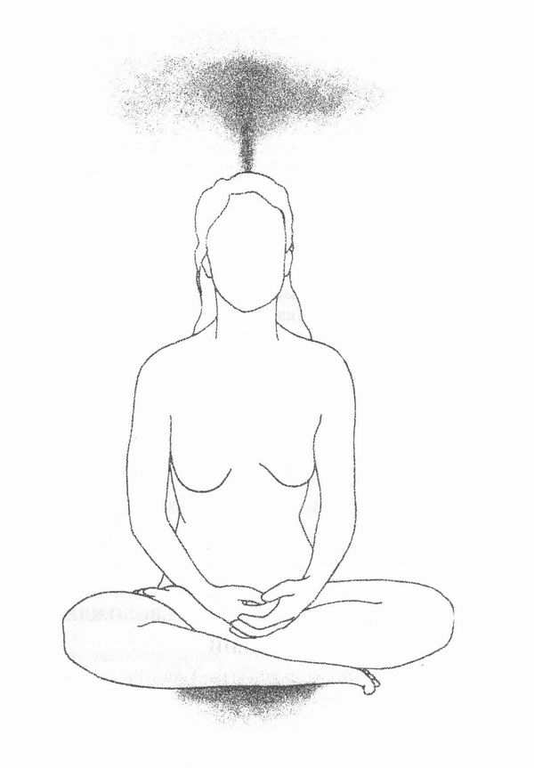 Энергия Кундалини лежит свернутая кольцами у основания позвоночника. При высвобождении она движется, пульсирует и раскручивается подобно волнам или пламени. Раскрученная часть ищет выхода и направляется, как правило, вверх по позвоночнику и выходит через макушку головы, которая иногда называется коронной чакрой. Чакра в переводе с санскрита означает «колесо» и имеет отношение к различным энергетическим вихрям в форме воронки на нашем эфирном теле.