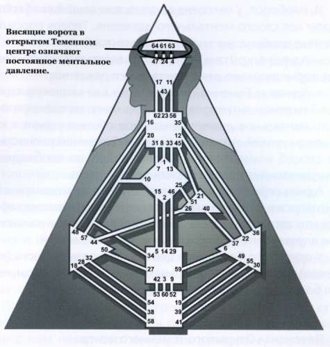 Предположим, у человека 63 ворота. 63 ворота — ворота сомнений. Этот человек сомневается, но не находит в себе ответов на свои сомнения, не может их разрешить. Именно поэтому сомнения не проходят. Такое состояние может быть очень утомительным.