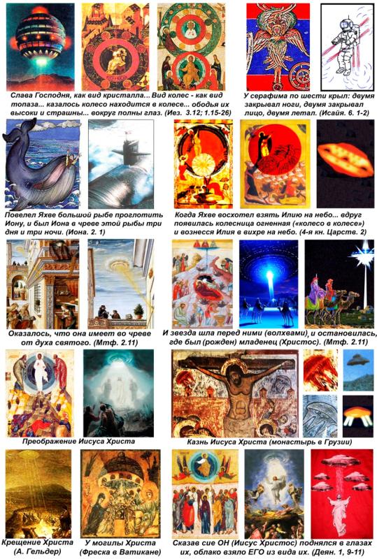 «ОКАЗАЛОСЬ, ЧТО ОНА ИМЕЕТ ВО ЧРЕВЕ ОТ ДУХА СВЯТОГО». (Мтф. 1:18). Конечно, жениху Марии, землянки избранницы, было несладко, но: «АНГЕЛ ГОСПОДЕН ЯВИЛСЯ ЕМУ». Один из создателей явился объяснить ему, что Мария ждет ребенка от «БОГА». «ПРОРОКИ (ВОЛХВЫ)», находящиеся в контакте с создателями, прибывают издалека, чтобы увидеть «БОЖЕСТВЕННОГО» ребенка. Их вел к месту один из ЛЕТАТЕЛЬНЫХ АППАРАТОВ СОЗДАТЕЛЕЙ: «МЫ ВИДЕЛИ ЗВЕЗДУ ЕГО НА ВОСТОКЕ, И ПРИШЛИ ПОКЛОНИТЬСЯ ЕМУ». (Мтф. 2:2). «И ЗВЕЗДА ШЛА ПЕРЕД НИМИ, НАКОНЕЦ, ПРИШЛА И ОСТАНОВИЛАСЬ НАД МЕСТОМ, ГДЕ БЫЛ МЛАДЕНЕЦ». (Мтф. 2:11). (Клод Варилон. «Они создали жизнь на Земле научным путем». Франция. 1973 г.)