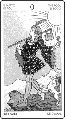 В конечном счете Дурак также представляет каждого из нас. Дурак – это новый и добровольный участник игры Таро, а также игры жизни. В большинстве колод Дурак изображается на краю отвесной скалы – со взором, устремленным к небу. Его явно не беспокоит то, куда приведет его следующий шаг. Хотя горные вершины и манят его издали, он, кажется, не ведает об их существовании. Не обремененный повседневными заботами, движется Дурак легким шагом вперед. У него нет определенного направления и конкретных целей. Он живет моментом, и он – действительно – счастливый странник.