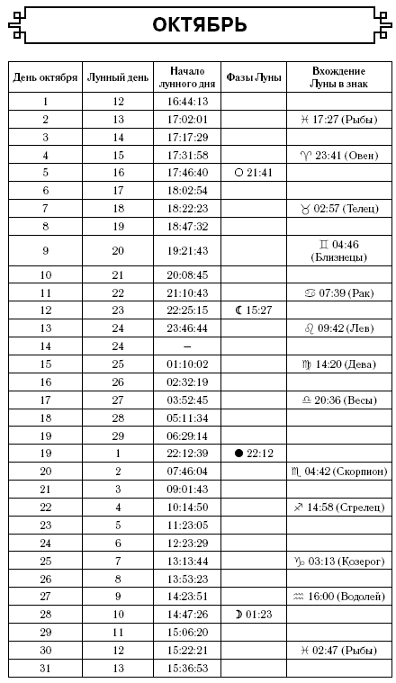 Деньги. В финансовом отношении октябрь очень неплох. Деньги будут поступать регулярно, и их количество заметно увеличится. Ориентировочные даты поступления наиболее солидных сумм – 3, 7, 8, 15–17, 24–26 октября.