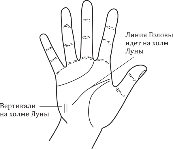 Если холм образует видимую выпуклость на ребре и на внутренней стороне ладони, то он считается хорошо развитым. А это значит сильными сторонами личности человека будут: уравновешенное, сильное, живое воображение, способность рождать творческие идеи, которые можно воплотить в реальности, интуиция. Если линия Головы имеет вид плавной дуги и заканчивается на холме Луны, то это говорит о прекрасно развитом творческом образном мышлении.