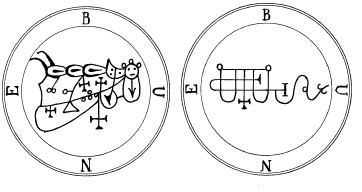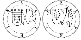 Двадцать шестой Дух зовется Буне (Bune) (или Бим (Bim)). Он – Сильный, Великий и Могущественный Герцог, появляется в форме Дракона, имеющего три головы, одна из них подобна голове собаки, другая подобна голове грифона, третья подобна голове человека. Он говорит высоким и приятным голосом, он перемещает места мертвых и приказывает духам, которые ему подвластны, собираться вместе у могил. Он дает богатство человеку и делает его мудрым и красноречивым, он дает правдивые ответы на ваши вопросы, и управляет 30 Легионами Духов. Вот его Печать, которой он повинуется. Он имеет другую Печать, которая изображена первой, но та, что последняя – лучше.