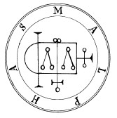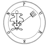 Двенадцатый Дух зовется Ситри (Sitri). Он – Великий Принц и появляется вначале с головой леопарда и крыльями грифона, но после того, как Мастер произнесет Заклинание, он может принять человеческий облик и при этом очень красивый. Он разжигает любовь мужчин к женщинам и женщин к мужчинам, и, если есть желание, он может также показать их обнаженными. Он управляет 60 Легионами Духов. Вот его Печать, нужно носить ее как Ламен так, как указано выше и т. д.