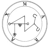 Двадцать первый дух – Маракс (Marax). Он – Великий Граф и Губернатор. Он появляется в образе огромного быка с лицом человека. Он может сделать людей очень сведущими в астрономии и во всех других свободных науках. Он также может дать хороших друзей и мудрое знание о свойствах трав и камней, которые могут быть драгоценными. Он правит 30 Легионами Духов, вот его Печать, которая должна быть сделана и надета так, как упомянуто выше.