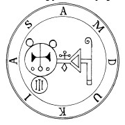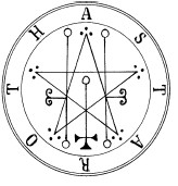 Двадцать девятый Дух зовется Астарот (Astaroth). Он – Великий и Сильный Герцог и появляется в образе Ангела-Губителя, верхом на адском Звере, подобном Дракону, с гадюкой в правой руке. Ты не должен никоим образом позволить ему приблизиться к себе, чтобы он не смог причинить тебе вред своим отвратительным дыханием. Поэтому Маг должен держать Магическое кольцо перед своим лицом, и это защитит его. Он дает правдивые ответы о событиях прошлого, настоящего и будущего и может раскрывать все секреты. Он расскажет о падении Духов [Ангелов] и объяснит причины своего собственного падения. Он может делать людей прекрасно разбирающимися во всех свободных науках. Он управляет 40 Легионами Духов. Вот его Печать, которую нужно носить так же, как Ламен, – перед собой, иначе он не будет ни появляться, ни повиноваться тебе и т. д.