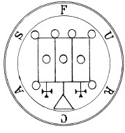 Пятидесятый Дух зовется Фуркас (Furcas). Он – Рыцарь и появляется в образе злобного старика, с длинной бородой и седой головой, верхом на палевой лошади с острым оружием в руках. Его служба заключается в том, чтобы обучать искусству философии, астрологии, риторики, логики, хиромантии и пиромантии, гадание по огню. Он управляет 20 Легионами Духов. Его Печать или Знак сделан следующим образом и т. д.