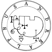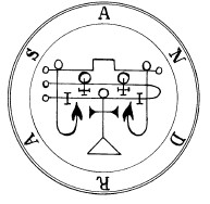 Шестьдесят третий Дух зовется Андрас (Andras). Он – Великий Маркиз, появляется в образе Ангела с головой ворона цвета черной ночи, верхом на сильном черном волке, и вздымающим в своей руке острый и сверкающий меч. В его службу входит сеять раздоры. Если заклинатель не проявит осторожность, он убьет его и его товарищей. Он управляет 30 Легионами Духов и вот его Печать и т. д.