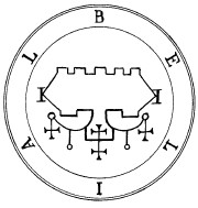 Тринадцатый дух зовется Белет (Beleth) (или Билет (Bileth), или Билет (Bilet)). Это Ужасный и Могущественный Король. Он едет на палевой лошади, и перед ним трубят трубы и играют различные музыкальные инструменты. Сначала он кажется очень свирепым. Но это так только до тех пор, пока Заклинатель не осмелеет. Для того чтобы это произошло, он [Заклинатель] должен держать в руке Ореховый Жезл, прочертив им линии в направлении Южной и Восточной сторон таким образом, чтобы получился треугольник, но не круг, и там он сможет командовать Белетом благодаря Обязательствам и Обязанностям Духов, как это в дальнейшем и произойдет. И если он все же не войдет в треугольник, произнеси вслух Обязательства и Заклинания перед ним, и тогда он согласиться повиноваться и войдет в него, и тогда Заклинатель сможет командовать им. К тому же он (заклинатель) должен быть с ним любезен, потому что он – Великий Король, ему надо оказывать почтение как это делают Короли и Принцы, которые ему прислуживают. И на среднем пальце левой руки мага должно быть надето Серебряное Кольцо, и надо держать его перед лицом своим (чтобы уберечься от огненного дыхания свирепого Духа). Также следует поступать при встрече с Амаимоном (Amaymon). Этот Великий Король Белет (Beleth) может вызвать любовь во всех ее проявлениях, и для Мужчин и для Женщин, если Мастер Заклинатель хочет удовлетворить свое желание. Он принадлежит к Чину Властей и управляет 85 Легионами Духов. Здесь его Величественная Печать, которую надо носить на своей груди во время делания.