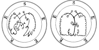 Семидесятый Дух зовется Сиире (Seere), Сеар (Sear) или Сеир (Seir). Он – Могущественный и Могучий Принц, под властью Амаимона (Amaymon), – Короля Востока. Он появляется в облике прекрасного человека, верхом на крылатом коне. Его служба заключается в том, в том, чтобы приходить и уходить, неожиданно оставляя после себя какие-то вещи в изобилии, к тому же он уносит и переносит все то, в чем вы не нуждаетесь. Он может обойти всю Землю в мгновение ока. Он помогает обнаружить все то, что украдено, спрятано, и еще много других вещей. Он безразличен к добру и выполняет лишь приказы заклинателя. Он управляет 26 Легионами Духов. И вот его Печать, которую следует носить и т. д.