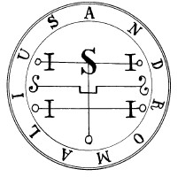 Семьдесят второй Дух зовется Андромалиус (Andromalius). Он – Великий и Могущественный Граф, появляется в образе человека с огромной змеей в руке. Его служба заключается в том, чтобы возвращать и вора, и товары, которые были украдены, и обнаруживать все зло и тайные умыслы; и наказывать всех воров и других злых людей, и обнаруживать сокровища, которые были скрыты. Он управляет более чем 36 Легионами Духов. Вот его Печать, которую нужно носить, как упомянуто выше.