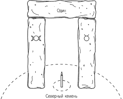 Подготовительный этап выглядит как обычно. Идите на север круга и положите на пол северный камень (или поставьте свечу). Затем визуализируйте каменную плиту, вертикально стоящую в двух футах слева и сзади от северного камня. Эта плита сине-серого цвета, в два фута шириной, два фута толщиной и шесть футов высотой. Она символизирует собой Богиню.
