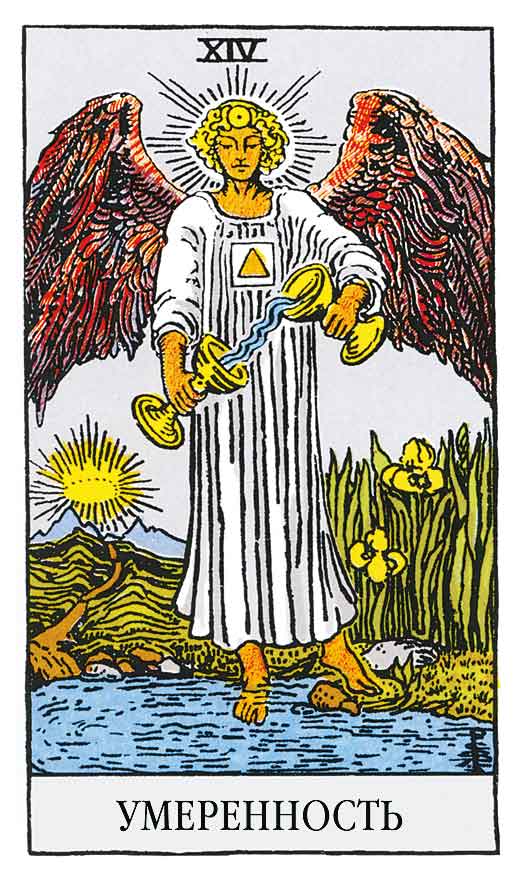 • Дорога символизирует, что социальные блага вам не очень важны, вы просто движетесь туда, куда нужно. Кроме того, это дорога, которая ведет от социума, – находясь в XIV Аркане, человек является частью социума, но не зафиксирован в нем.