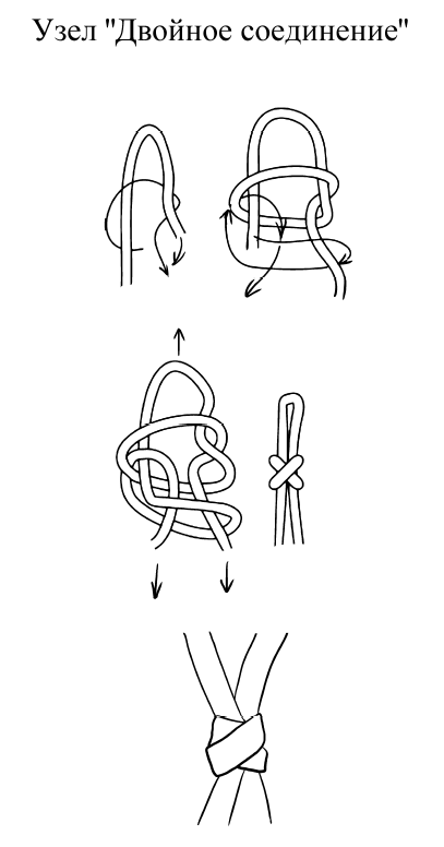 Этот прочный узел представляет из себя именно то, что указано в его названии – один узел завязан в другой. Обе стороны узла выглядят одинаково. Выглядит особенно красиво, если завязан из разноцветных шнуров. Тогда с одной стороны будет перекладинка одного цвета, а с другой – другого. Применяется для укрепления отношений.