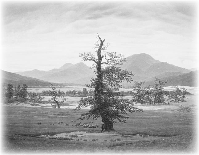 Каспар Давид Фридрих (1774?1840). Одинокое дерево. 1822. Первоначальное название «Сельская местность при утреннем свете»