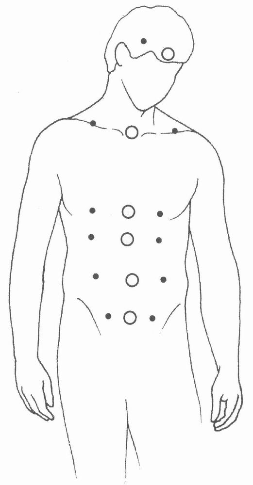 Сосредоточьтесь на линии главных чакр и линиях вспомогательных чакр, отстоящих по обе стороны от главных на расстоянии двух-трёх дюймов. Какие кажутся открытыми и какие кажутся закрытыми? Вы можете повернуть ваши ладони к телу на расстоянии нескольких дюймов и приближать их к телу над вспомогательными чакрами, сначала с одной стороны, а потом с другой; какие из них кажутся блокированными? Вспомогательные чакры слева на животе очень сильно воздействуют на спускающуюся ободочную кишку; чакры справа на животе воздействуют на восходящий участок ободочной кишки. Чакры на груди воздействуют на лёгкие с обеих сторон. Вспомогательные чакры на лбу влияют на правое и левое полушария мозга и на психическое зрение.