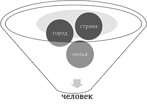 страна – город – село – семья – родители – друзья – человек.