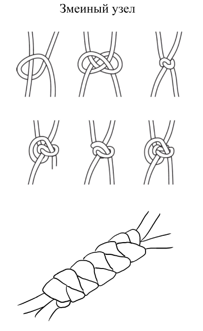 Из Змеиного узла получается симпатичный объемный шнур, который рисунком напоминает змеиную кожу. Плетется на двух концах.