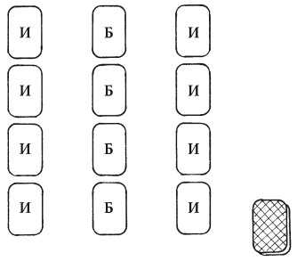Рис. 12. Ряды карт при гадальном пасьянсе (Б – базовые, И – игровые)
