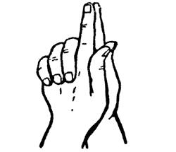 Методика исполнения: большие пальцы обеих рук соединены своими боковыми поверхностями. Указательные пальцы выпрямлены и тоже соединены вместе. Остальные пальцы скрещены между собой.