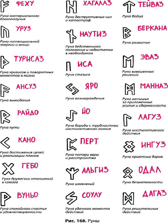 Рабочие комбинации складываются из нескольких рун, от двух до семи и больше. В некоторых случаях это может быть одна руна, повторенная многократно. Каждая такая комбинация представляет собой заклинание, направленное на достижение конкретной цели. Кроме того, из рун состоят слова, которые сами по себе обладают силой привлекать те явления, которые обозначают: любовь, богатство, здоровье и т. п.