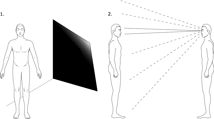 Попросите вашего партнера встать вплотную к чистой белой стене. Начинающим лучше всего выполнять упражнение в комнате с приглушенным освещением. Встаньте или сядьте на расстоянии 8–10 футов от партнера. Вы должны видеть партнера с головы до пят на фоне большой и свободной от посторонних предметов области.