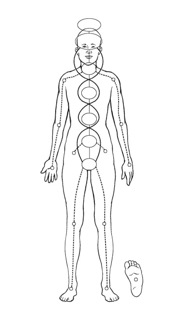 Как уже говорилось в первой главе, чакры соединены между собой нематериальным каналом, который проходит вертикально по центру тела и называется сушумна. Два дополнительных канала, называемые ида и питала, контролируют энергии инь и ян. Они перекручиваются «восьмерками» вокруг каждой чакры и проходят рядом с сушумной (см. рис. 1.6). Кроме этих каналов существуют тысячи других каналов, проводящих тонкую энергию. Они называются нади, что на санскрите означает «бегущая вода». Ида и пингала представляют соответственно лунный и солнечный аспекты.