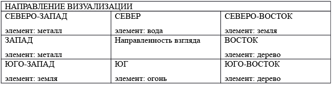 Эти пять элементов связаны с восемью направлениями земли: металл с северо-западом и западом; земля – с юго-западом и северо-востоком; дерево – с востоком и юго-востоком; вода – с севером; огонь – с югом.