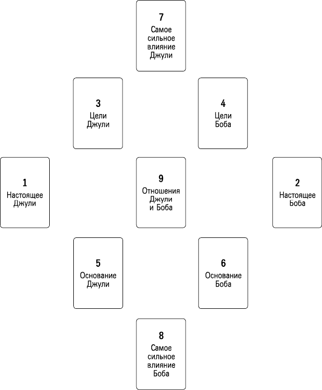 Джули тридцать семь лет, а Бобу – сорок пять. Они познакомились в архитектурной фирме, где вместе работают, а спустя два года поженились. Сейчас, через девять месяцев после их свадьбы, они ожидают ребенка и хотят знать, что карты могут сказать об их отношениях.