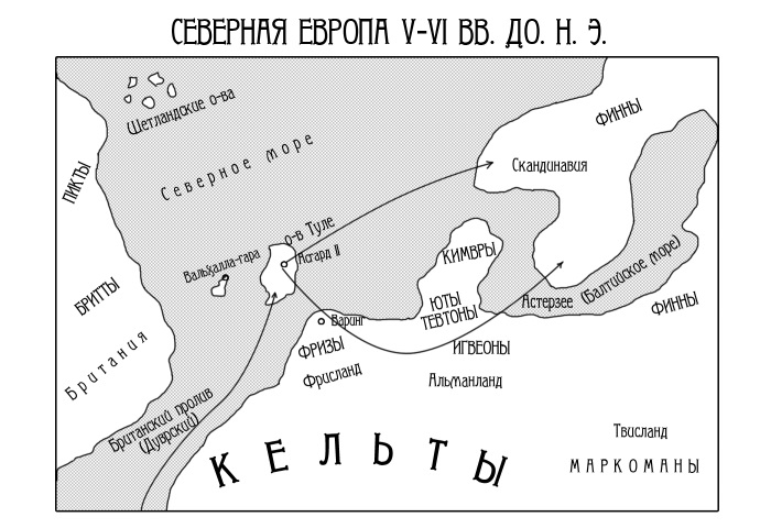 Итак, Один, его сыновья и жена Фригг (в некоторых источниках Фрейя также упоминается, как жена, в других же, – как сестра) отправились на Северные земли и поселились на острове Туле.