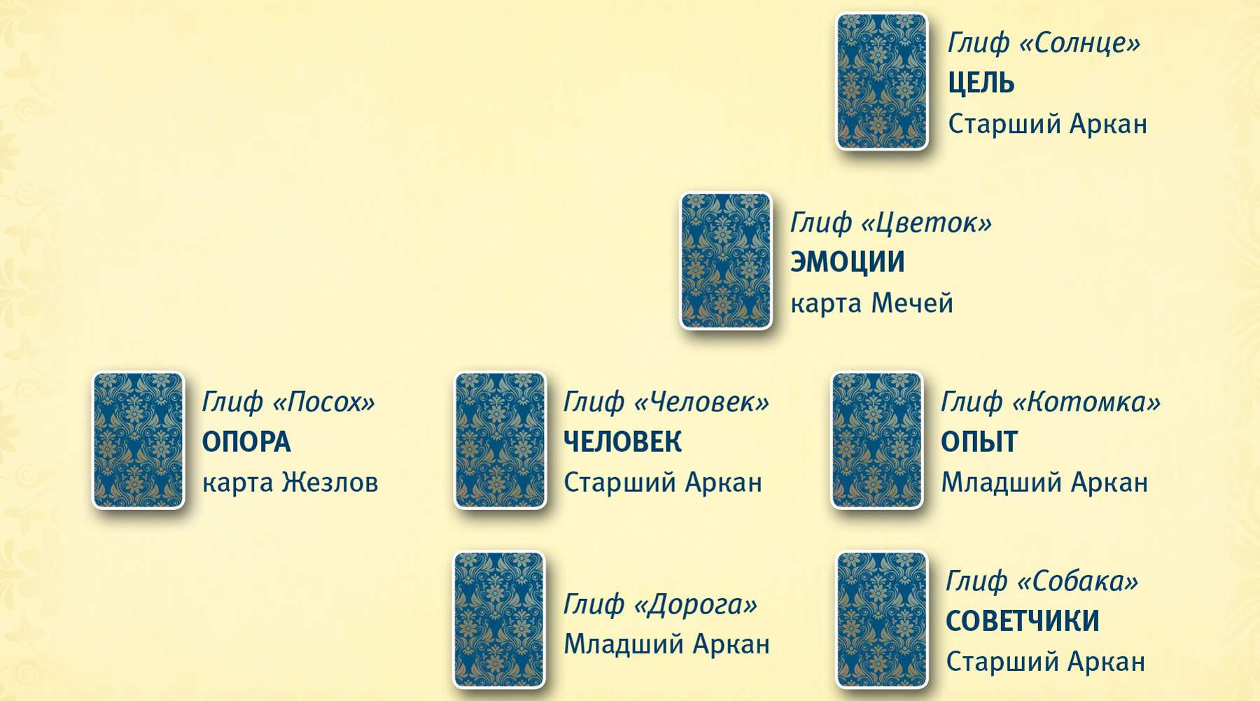 Если вы не знаете, на какой глиф положить карту (то есть она может подойти под несколько глифов), то расклад производится в таком порядке – сверху вниз, слева направо.