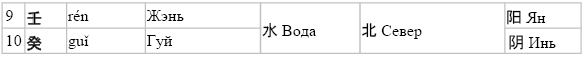 Таблица соответствий циклических знаков другим категориям китайской философии.