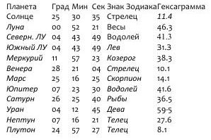 Из этих объяснений легко увидеть, что появляется второй столбец цифр, похожий на первый, но с той разницей, что некоторые планеты занимают другие позиции.
