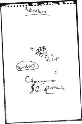 Записка Кристины Холохан, на которой она в трансе в присутствии полицейских Тони Баттерса и его коллеги, помимо прочего, записала имя убийцы «Pokie», слово «сад» и название деревни Икенхам.