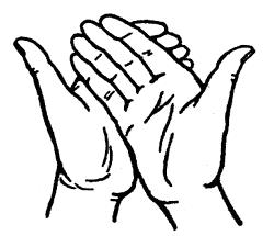 Методика исполнения: четыре пальца правой руки поддерживают снизу и обхватывают аналогичные пальцы левой руки. Большие пальцы обеих рук свободно отставлены несколько снаружи, образуя ручки чаши.