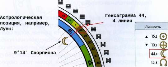 Мы уже знаем, что гексаграмма состоит из 6 линий, что гексаграммы вписаны в зодиакальный круг, и что каждая гексаграмма занимает определённую часть круга.